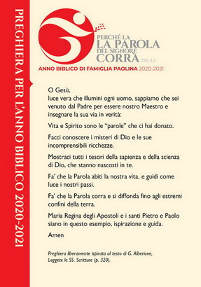 L'Anno Biblico paolino sia vissuto intensamente ovunque, affinché “la Parola del Signore corra e sia glorificata” oggi e sempre (cf 2Tes 3,1) |
