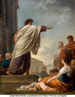 Afferrato e affascinato dall’amore del Cro-cifisso, Paolo intraprende i viaggi missionari con il preciso intento di portare ovunque la buona novella. Il racconto degli Atti descrive gli spostamenti, le città visitate, le reazioni delle diverse comunità… l’esperienza del giovane missionario. In questo resoconto avvincente ci si imbatte – nel mezzo del secondo viaggio missionario – in una battuta d’arresto dai toni chiaroscuri: il discorso di Atene. Paolo vi giunge dopo essere stato a Tessalonica e a Berea e ai suoi occhi la città costituisce il luogo ideale per vivere una particolare esperienza di evangelizzazione e di incontro fra fede e cultura in quanto, anche se già in declino, rappresenta un faro culturale per l’intero mondo ellenistico e non solo; la presenza di scuole filosofiche (epicurei, stoici…) e i culti alle diverse divinità costituivano per Paolo una vera e propria sfida. Il libro degli Atti nel capitolo 17 racconta l’esperienza dell’Apostolo con due differenti scansioni: nella prima è testimoniato l’ardore di Paolo che, al suo solito, valorizza sinagoga e piazza per presentare l’Evangelo suscitando l’interesse dei colti abitanti; nel secondo l’attenzione si fa ancora più dettagliata e sono gli stessi ateniesi ad invitare l’apostolo per approfondire ulteriormente l’argomento: ‘Possiamo dunque sapere qual è questa nuova dottrina predicata da te? Cose strane ci metti negli orecchi; desideriamo conoscere di che cosa si tratta’(At 17,19-20). A questo punto Paolo inizia l’esposizione dell’argomento con una bella ed erudita trattazione facendo accostamenti a filosofi e poeti del luogo per dimostrare la verità su Dio e sulla storia della salvezza; sembra quasi un trattato di teodicea quello di Paolo, cioè il tentativo di spiegare con la ragione l’esistenza di Dio e le sue ragioni. La predica è bellissima e ben impostata, ma ai presenti non interessa più di tanto: ‘Ti sentiremo su questo un’altra volta’ (At 17,33) è la triste conclusione della permanenza ateniese; |