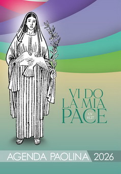 Introduzione all’Agenda Paolina 2026 L’anno del Giubileo ci ha visto dare anche l’ultimo saluto al nostro caro Papa Francesco – dopo dodici anni di intenso pontificato, in cui ha sottolineato in particolare temi quali: la pace, l’ambiente, l’accoglienza… – e il primo di benvenuto a Papa Leone XIV che, fin da subito, ha ribadito con forza la necessità della pace nelle relazioni tra i popoli. È proprio questo il tema su cui vogliamo focalizzarci quest’anno, chiedendo aiuto al nostro Fondatore, perché ci doni pensieri di pace, con Dio, con noi stessi, con gli altri, nelle nostre comunità, nella Famiglia Paolina. C’è un bisogno urgente di pace, che inizi in primis nel cuore di ognuno, una pace interiore che solo il Signore può dare in modo profondo: «Vi do la mia pace, non come la dà il mondo» (Gv 14,27). Solo quando il cuore dell’uomo si lascia abitare dallo Spirito Santo, allora diventa contagioso, diventa portatore e seminatore di pace e gioia, ovunque si trova. Don Vito Spagnolo, SSP Agenda PDF | SSP - paulus.net |